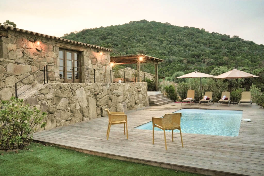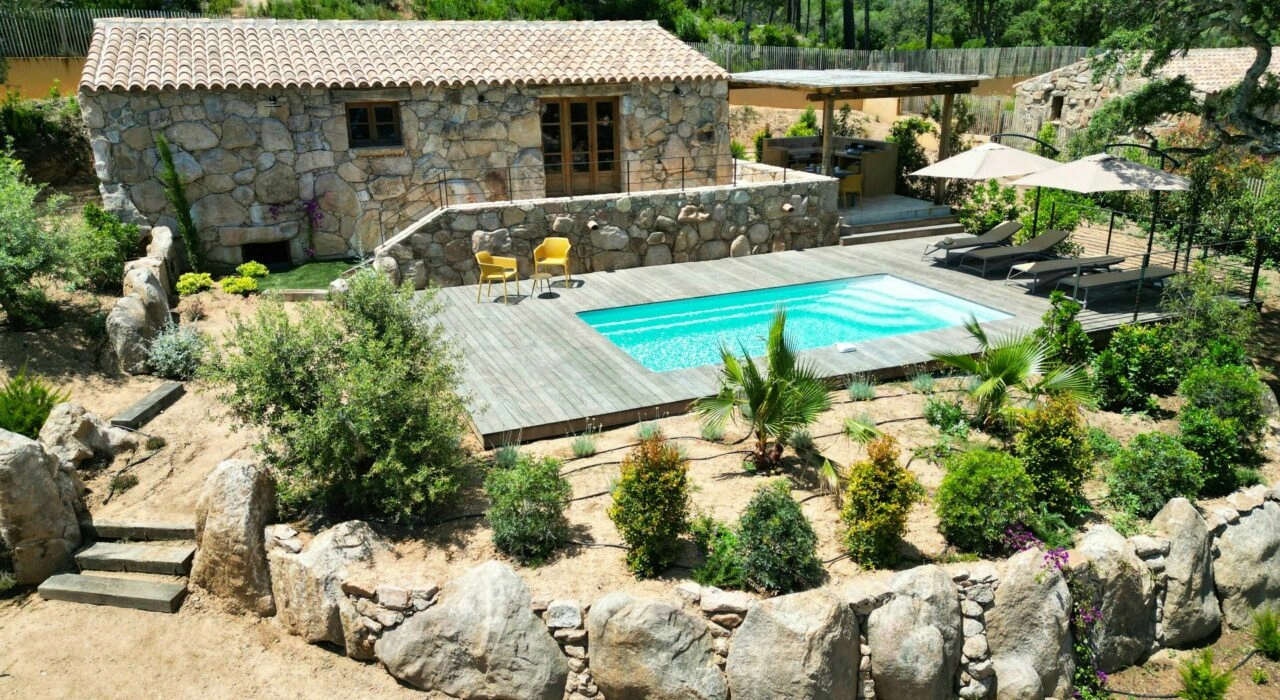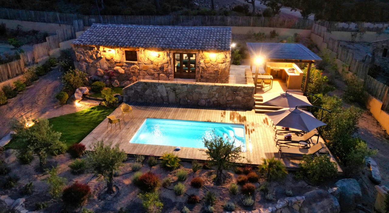 Un écrin de charme à deux pas de la plage de Tarco, qui allie discrétion et raffinement. Ici, l’esprit corse se vit pleinement : pierre blonde, lumière naturelle, et un cadre qui invite au lâcher-prise.